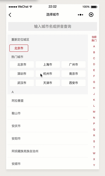 - 亦可通过 侧边栏 选择,城市按拼音首字母排列