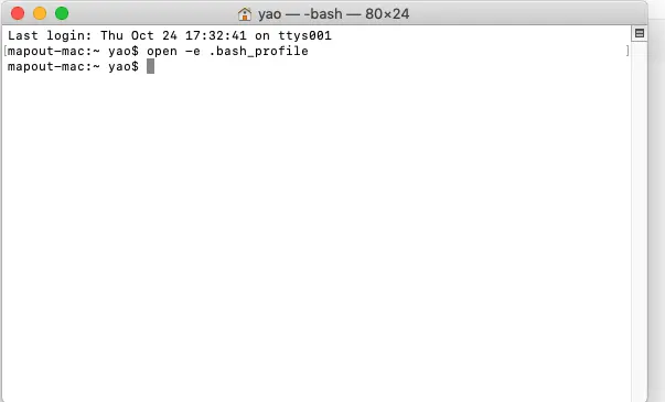 1.打开终端,输入open -e .bash_profile命令