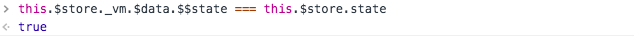 由上所说,我们可以得知store._vm.$data.?state === store.state, 我们可以在任何含有vuex框架的工程验证这一点。