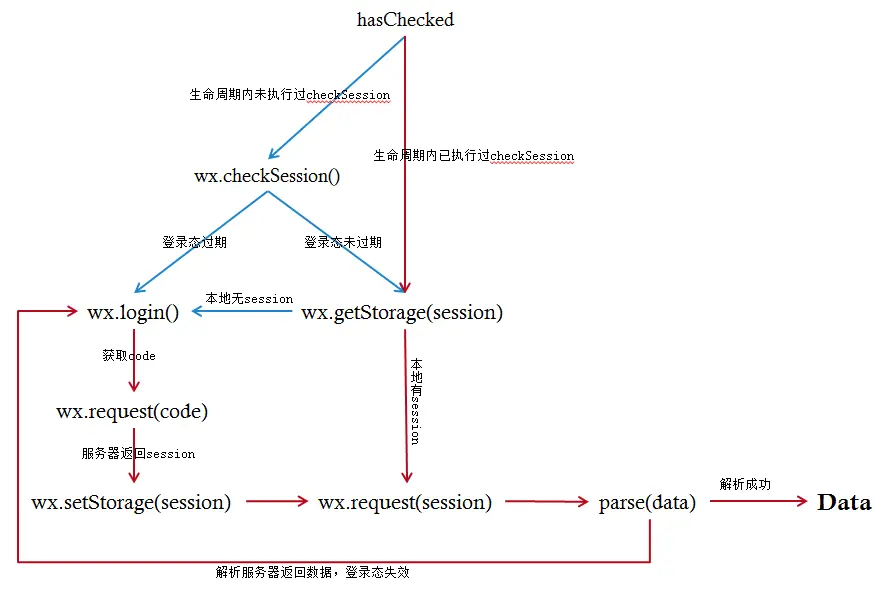 如果用户从来没有登陆过时,或者 checkSession 过期: