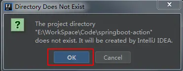 确认好项目名称和项目要保存的路径,点击“Finish"按钮,如果保存的路径不存在,会提示是否自动创建该目录,点击“OK”即可: