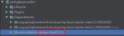 此时在Maven依赖树看到的amqp-client的版本就变为了5.7.0: