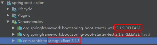 这里我们也没有指定version,所以使用的是默认的版本2.1.9.RELEASE(和上面使用amqp-client的原理一样):