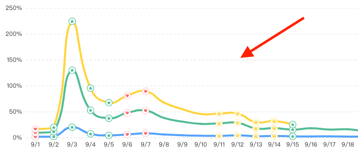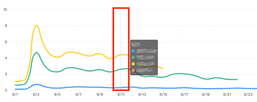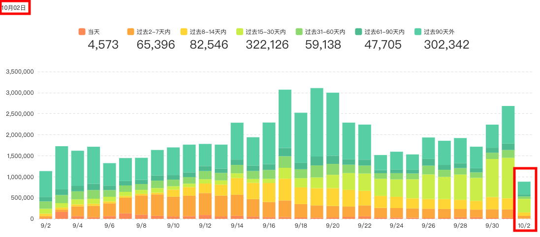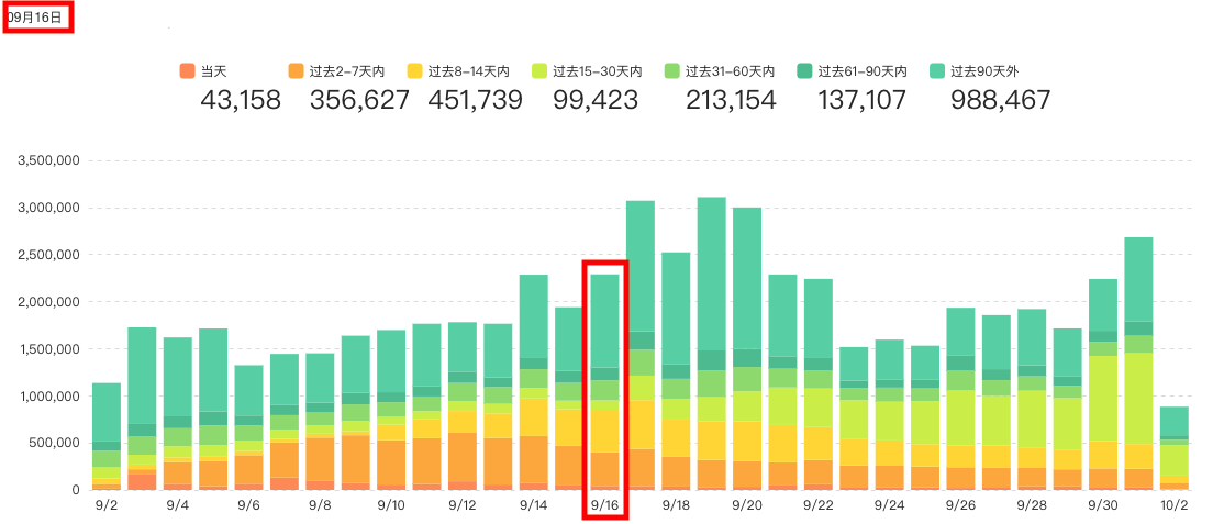当想看 9月16日的数据时,点击对应的柱子,则图例中的数据会刷新,同时左上角的时间也会随之变化: