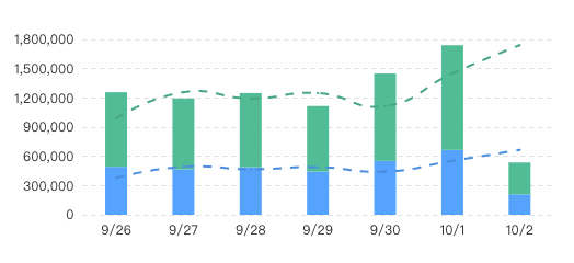 我遇到过更进一步地需求:在柱状图的图例中,要默认展示当天的数据,当点击某一天时柱子时,图例中的数据要随之变化。需求的目的是,让用户能更直观地了解每一天的数据,当他需要看某两天的数据对比时,只需要点击柱子切换数据即可。效果如下: