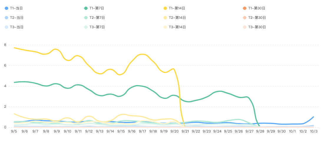 想想也是啊,设置为双轴的原因,本来就是因为它们的数值差异过大。如果不设置双轴,某些数据就看不到了,并不是没有渲染,而是因为太小,导致其被数值大的数据 “淹没” 了。