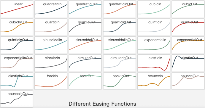 研究了 示例代码 后,发现它的实现原理是:模拟了输入 x 轴的不断变大的值,通过不同的效果函数,来输出对应的 y 轴的值,达到呈现出不同的效果。