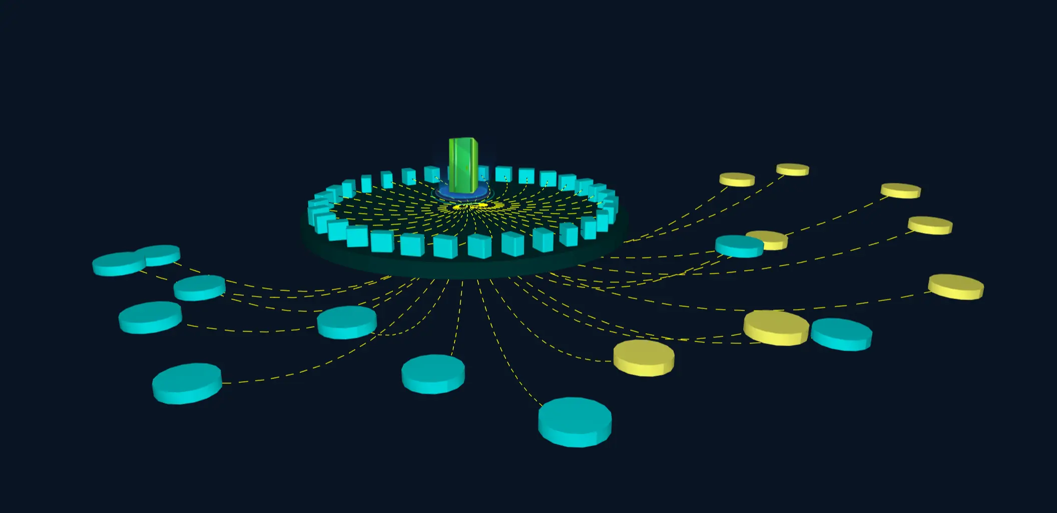 }为了让创建的设备在平台上的布局更加合理,根据 index 计算出设备摆放角度,并且根据圆柱中心,圆盘半径和角度计算出每个设备摆放的位置: