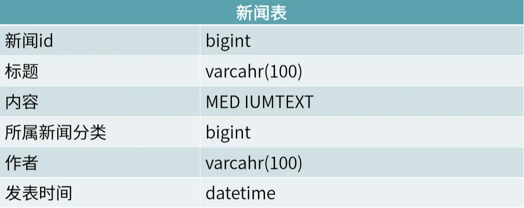 拿新闻来说,我们首先设计好一个表结构如下图所示。