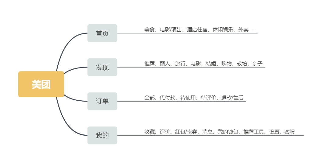 下面是美团目前涉及到的大概的功能信息结构: