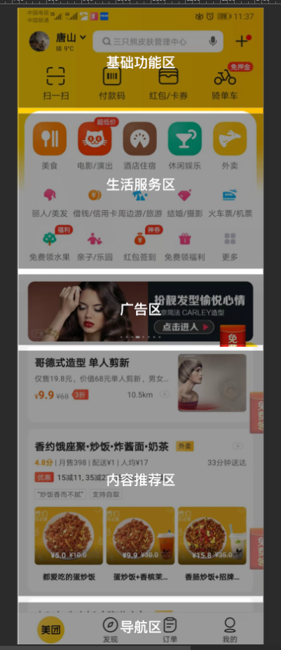 比如,拿美团首页的框架举例,来看看交互设计师应该如何思考。