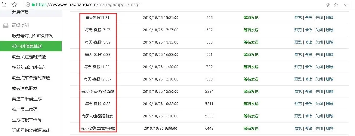 公众号群发消息不限制次数,公众号无限推送消息,公众号开发文档提供客服消息接口,支持48小时内不限次数推送,会编程的朋友直接假设在自己服务器上即可,也可以使用微号帮平台48小时信息推送。