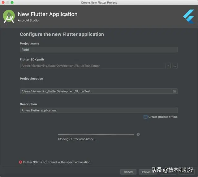 Flutter项目存在本地选择位置 上面点击下一步,进入下面的界面: