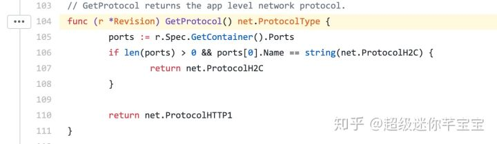 在前面的分析中我们得出的结论是通过 port[0].containerPort 来指定自定义端口,其实也可以指定 port[0].name 字段。而 Revision Controller 生成 Deployment 部署服务的时候就是这个 name 字段来判断应该使用 http1(8012端口) 协议还是 http2(8013端口) 协议的。