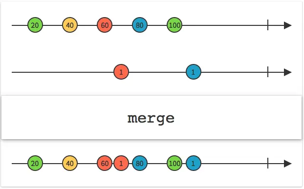 | merge | 将几个源序列合并成一个,响应每个事件 |