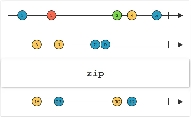 | zip | 将源序列组合到一起,以组合的形式发出(存值) |