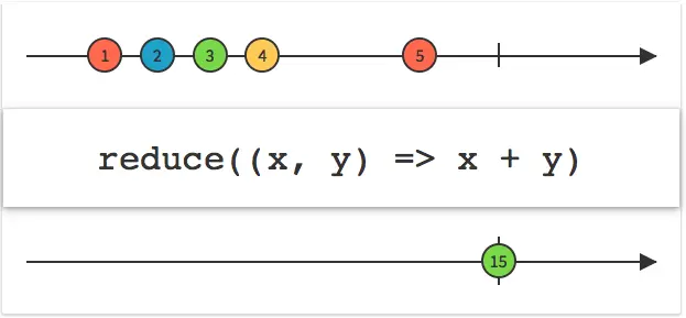 | reduce | 设置的初始化值开始,然后对可观察序列发出的所有元素应用累积器闭包,并以单个元素可观察序列的形式返回聚合结果 - 类似scan |