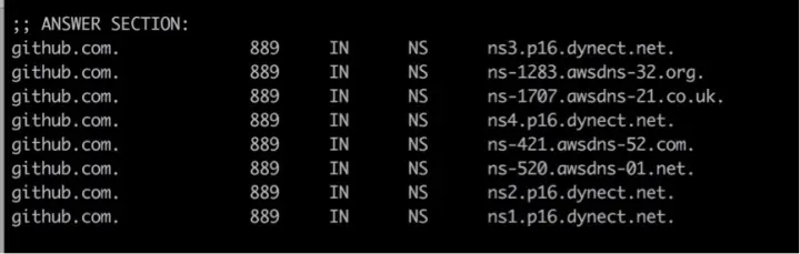 github.com就是多权威 DNS 模式,同时使用了 dyn 和 asw 的权威 DNS。