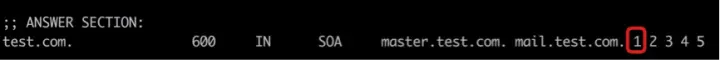 1、用户在 MASTER 上动态修改域名解析记录(如 NSUPDATE),修改成功后,域名所在 ZONE 的版本号加 1。