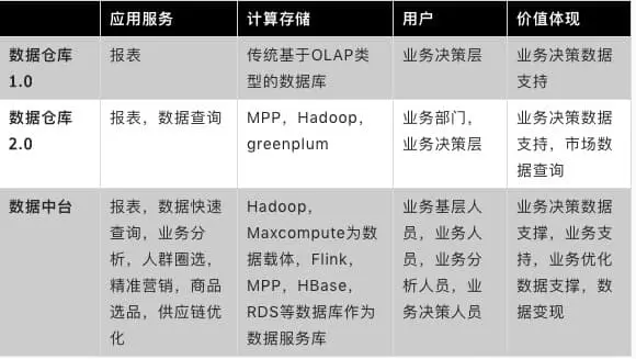 数据中台与传统数据仓库差异