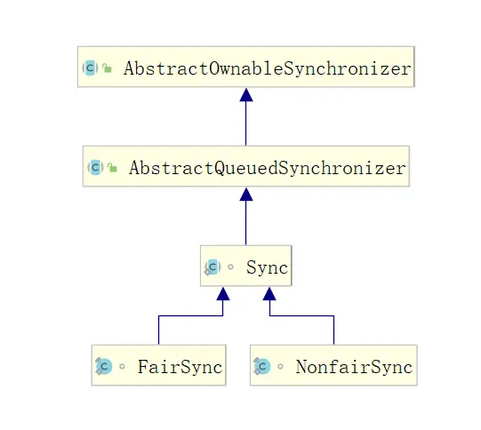我们可以发现 ReentrantLock 的加锁、解锁方法都是通过调用其内部的 Sync 实现的,并且 Sync 是其内部抽象类,其实现分别有 FairSync 和 NonfairSync,分别代表了公平锁和非公平锁的实现。默认会使用非公平锁。我们看一下 Sync 的类图。上面的父类就是大名鼎鼎的 AQS ,我会在接下来的文章里分析。