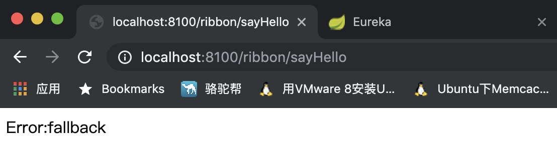 启动eureka-server、eureka-client、eureka-ribbon、spring-gateway相关服务,访问http://localhost:8100/ribbon/sayHello地址,页面显示结果如下: