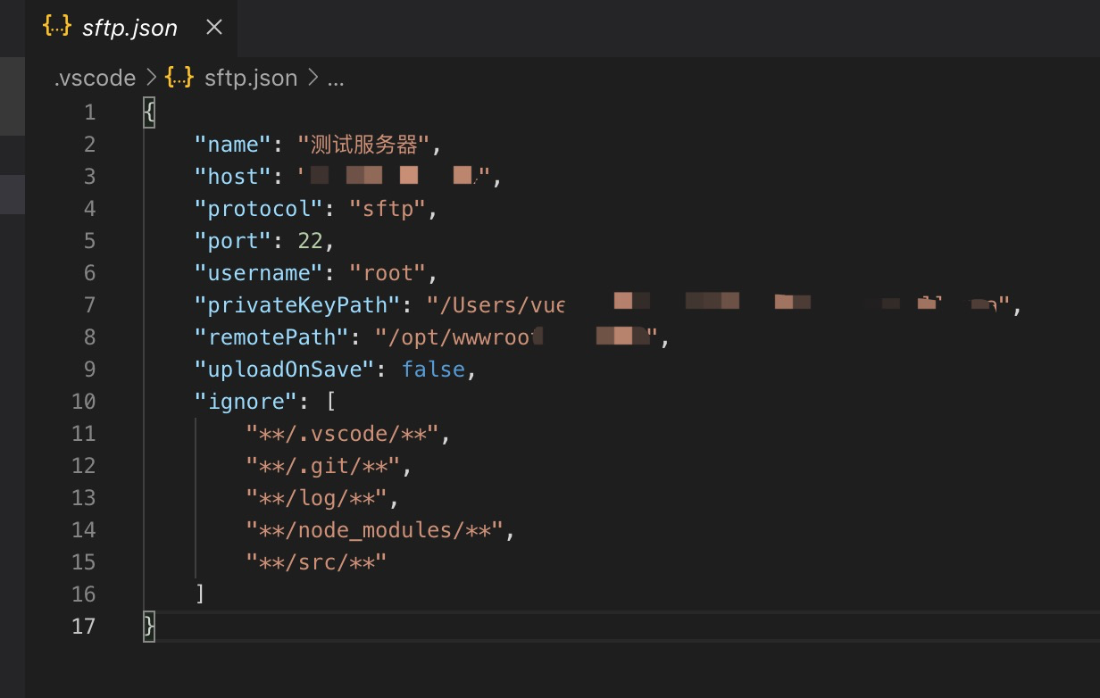 - ignore:指定在使用sftp remote的时候忽略的文件及文件夹,注意每一行后面有逗号,最后一行没有逗号