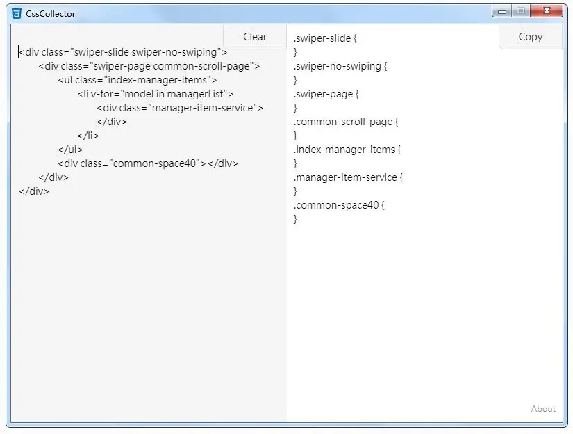工具叫CssCollector,可以快速拾取HTML中样式的类名,节省开发时间和精力