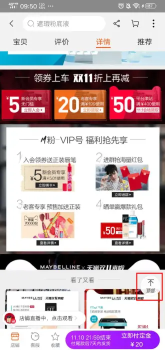 在手机页面右下角放一个悬浮的返回顶部按钮,不会占用页面空间,手指可以很容易触碰到,用户操作起来很轻松。像一些导购类网站比较适合放一个返回顶部的按钮,比如淘宝,用户在看一个商品的时候,会纠结会犹豫,会上下来回看,如果一个商品的详情页太长,用户向上翻却一直翻不到头,用户此时就会非常烦躁。