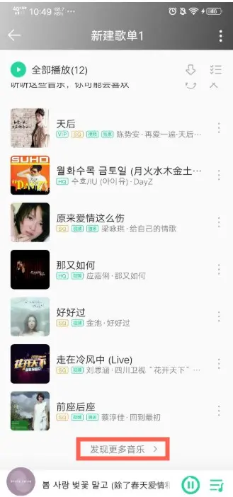 qq音乐的音乐推荐列表,翻到最底部时,会有一个比较轻的文字提示“发现更多音乐”,看到提示我会知道这已经是最底部了,下边不会再有内容了,我还可以选择点击发现其他的音乐,给提示文字也加了功能