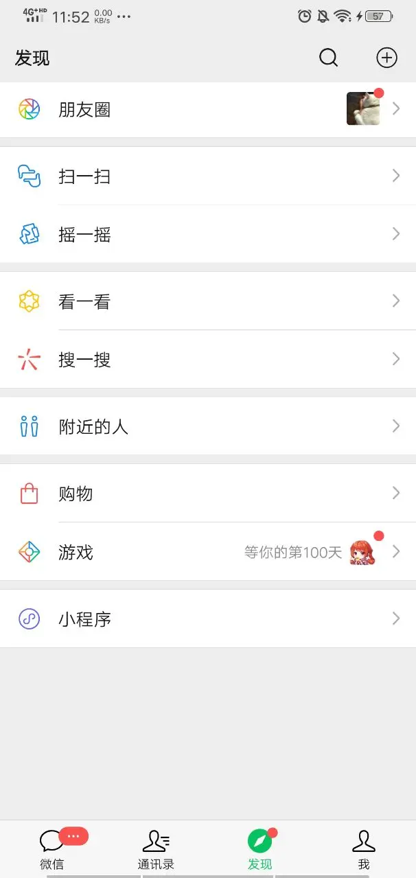 粗分割线用来分割不同的版块,比如微信的发现页面,把不同的版块用粗的分割线分开,朋友圈是最重要的一个功能,放在最顶部,扫一扫和摇一摇是相对常用的功能,放到第二个版块,剩下的都是相对不太常用的功能,按照功能分类成不同的版块,用粗的分割线分开