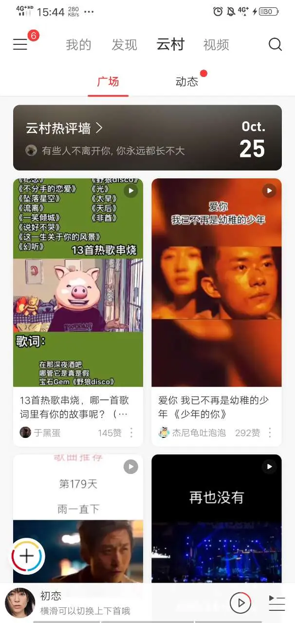 更新提醒,或者新内容只有一条的时候,可以不用给用户数字提示,一个带颜色的徽标提醒就可以;如果需要让用户知道有多少条新内容,可以使用数字徽标;未读消息在用户读完一会应该消失,有二级页面的,点到二级页面之后消失,没有二级页面的,离开改页面之后,徽标消失。下面是网易云音乐的例子,左上角表示有6条未读消息,动态的徽标表示有更新新的动态