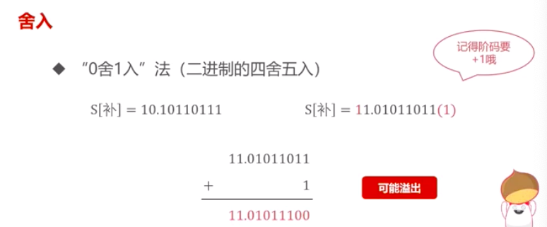 - 舍去1则需要加1,舍去的是0则不进行加1操作
