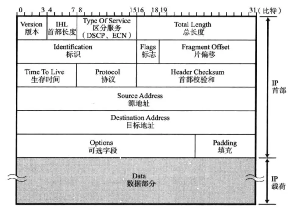 - 填充:通过填充0,把首部长度调整为32比特的整数倍。
