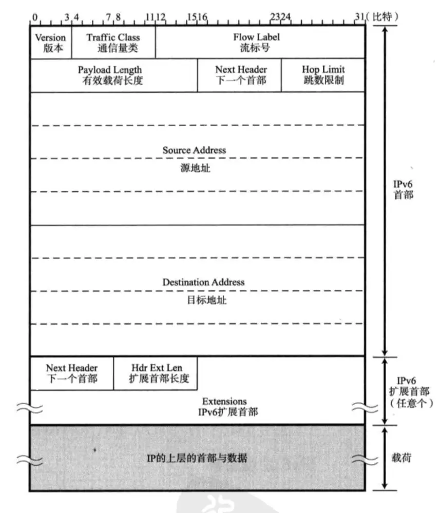 - 通信量类: 与IPv4中的TOS字段基本一致。