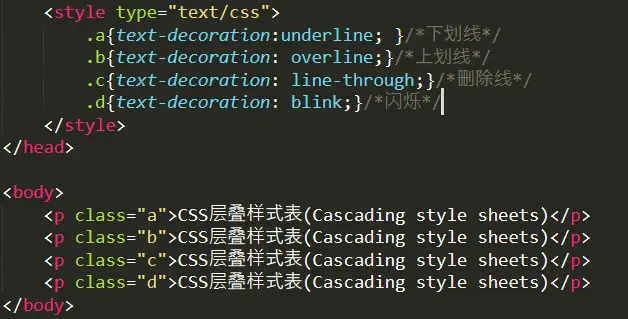 | text-decoration | 文本的装饰 underline(下划线) | overline(上划线) | line-through(删除线) | blink(闪烁)| none |