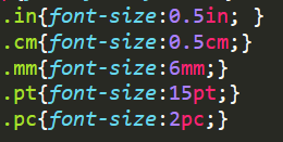 | pt | 磅,印刷的点数,72磅=1英寸 |