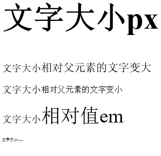 1、px像素,受显示器分辨率影响,手机端一般不设置px 2、em/%