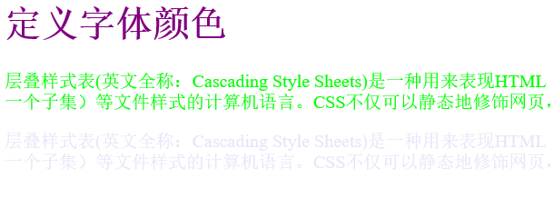 通常用数字或百分比代表每个颜色的值,中间用逗号隔开,数字:0-255,百分比:0%-100%,大于或小于边界值,会自动修复为边界值