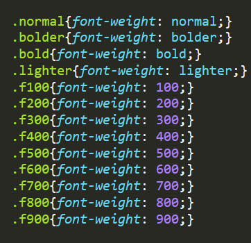 语法: font-weight:normal | bold | bolder | lighter | 100-900