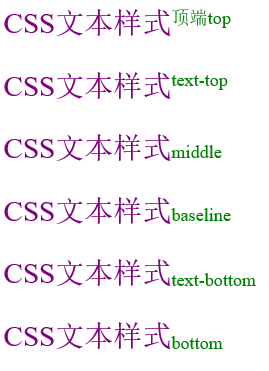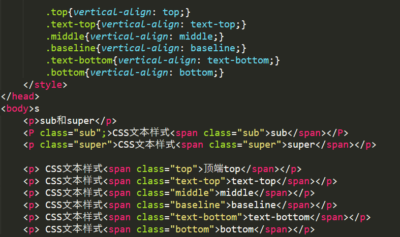 语法: vertical-align:baseline | sub | super | top | text-top | middle | bottom | text-bottom 长度 | 百分比