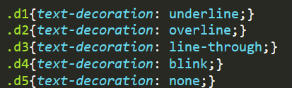| text-decoration | underline下划线、overline上划线、line-through贯穿线、blink、none |