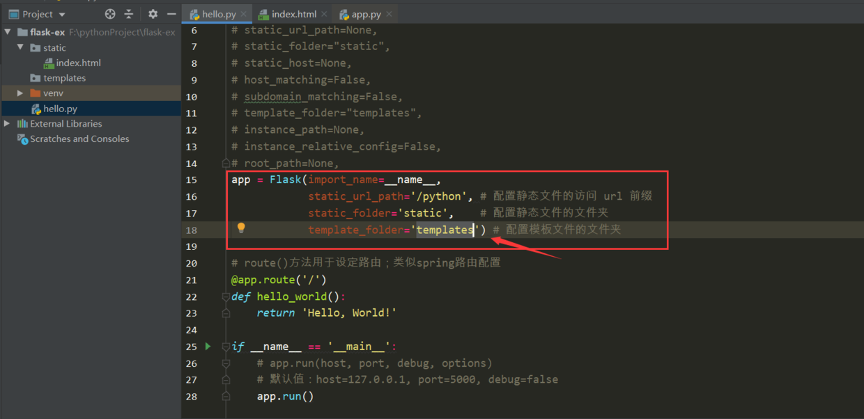 在app.py设置静态文件的访问路径以及模板文件夹参数