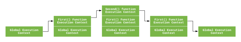 - Eval 函数执行上下文: 执行在 eval 函数内部的代码也会有它属于自己的执行上下文,但由于 JavaScript 开发者并不经常使用 eval,所以在这里不会讨论。