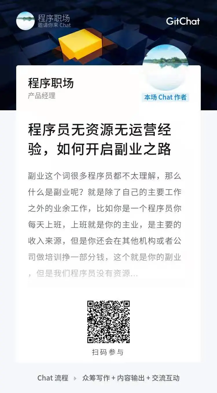 关注公众号 程序职场 加微信 免费送该 Chat 课程