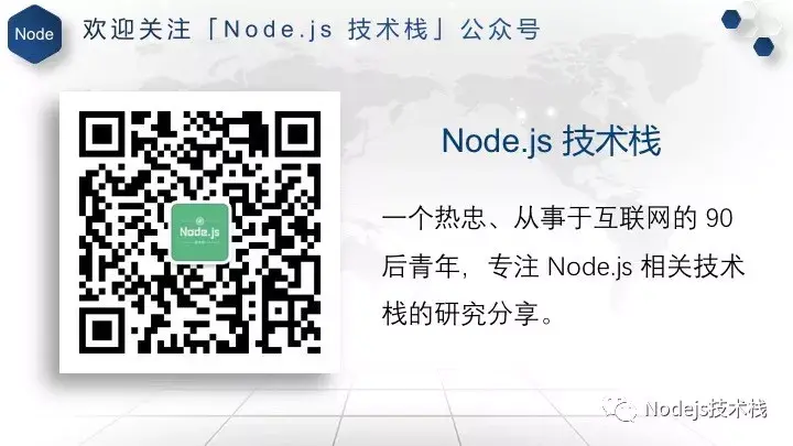 作者简介:五月君,Nodejs Developer,慕课网认证作者,热爱技术、喜欢分享的 90 后青年,欢迎关注 Nodejs技术栈 和 Github 开源项目 www.nodejs.red,欢迎扫码关注下方 Nodejs技术栈 公众号。