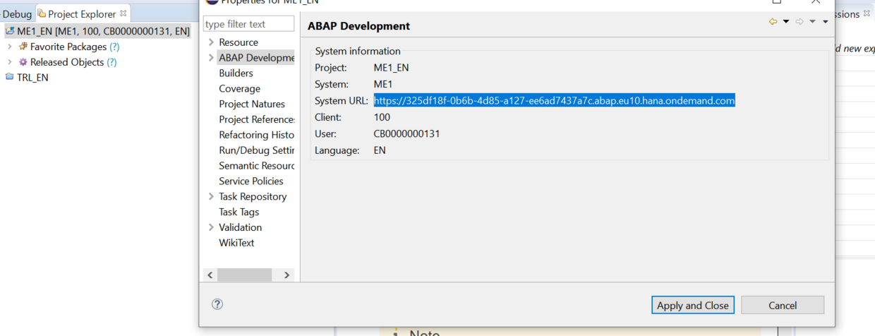 用ABAP Development Tool登录SAP Cloud Platform ABAP编程环境后,对ABAP项目点击右键,选择属性,从而找到该环境的web访问的url: