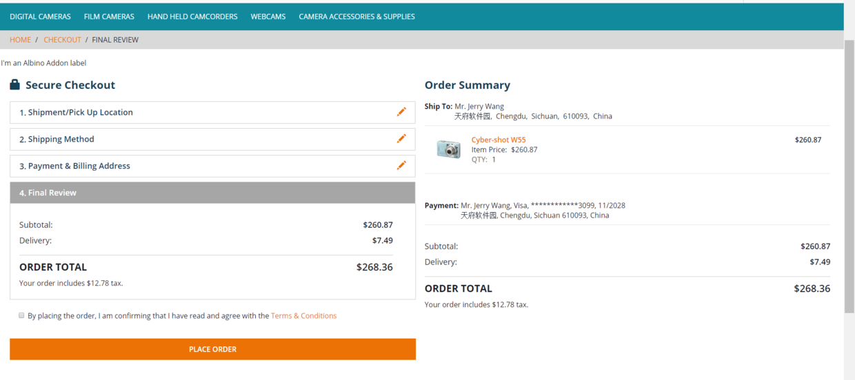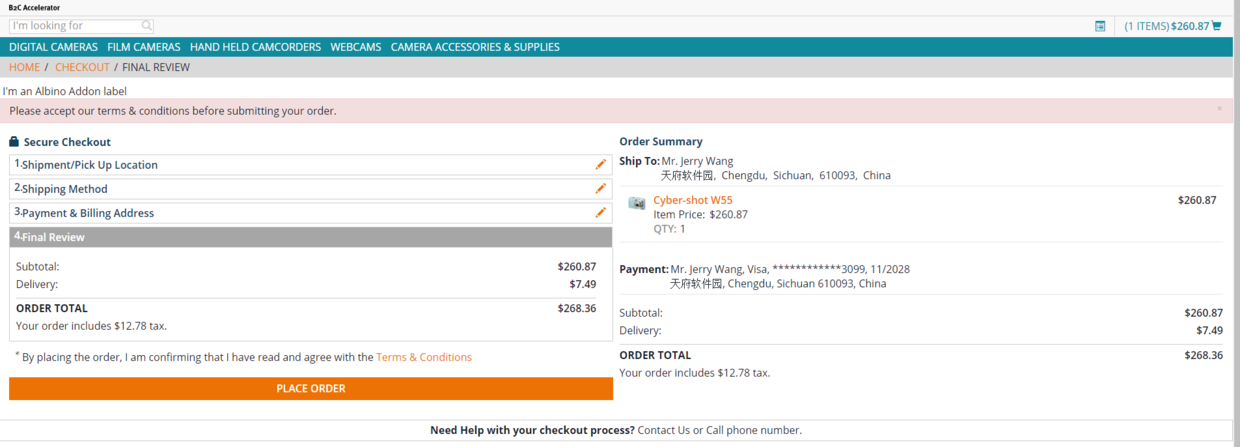 在SAP Hybris commerce Storefront里购物下单 已注销 2019-10-26 114 阅读1分钟 操作过程和大家平时在网上购物没有太大差别。 选中一款心仪的产品,点击Add to cart加到购物车里: 点击Check out结帐: 生成一个购物车ID: 维护发货地址: 维护发货方式: 点击Place order按钮生成订单: 界面显示生成的订单ID: 要获取更多Jerry的原创文章,请关注公众号"汪子熙":