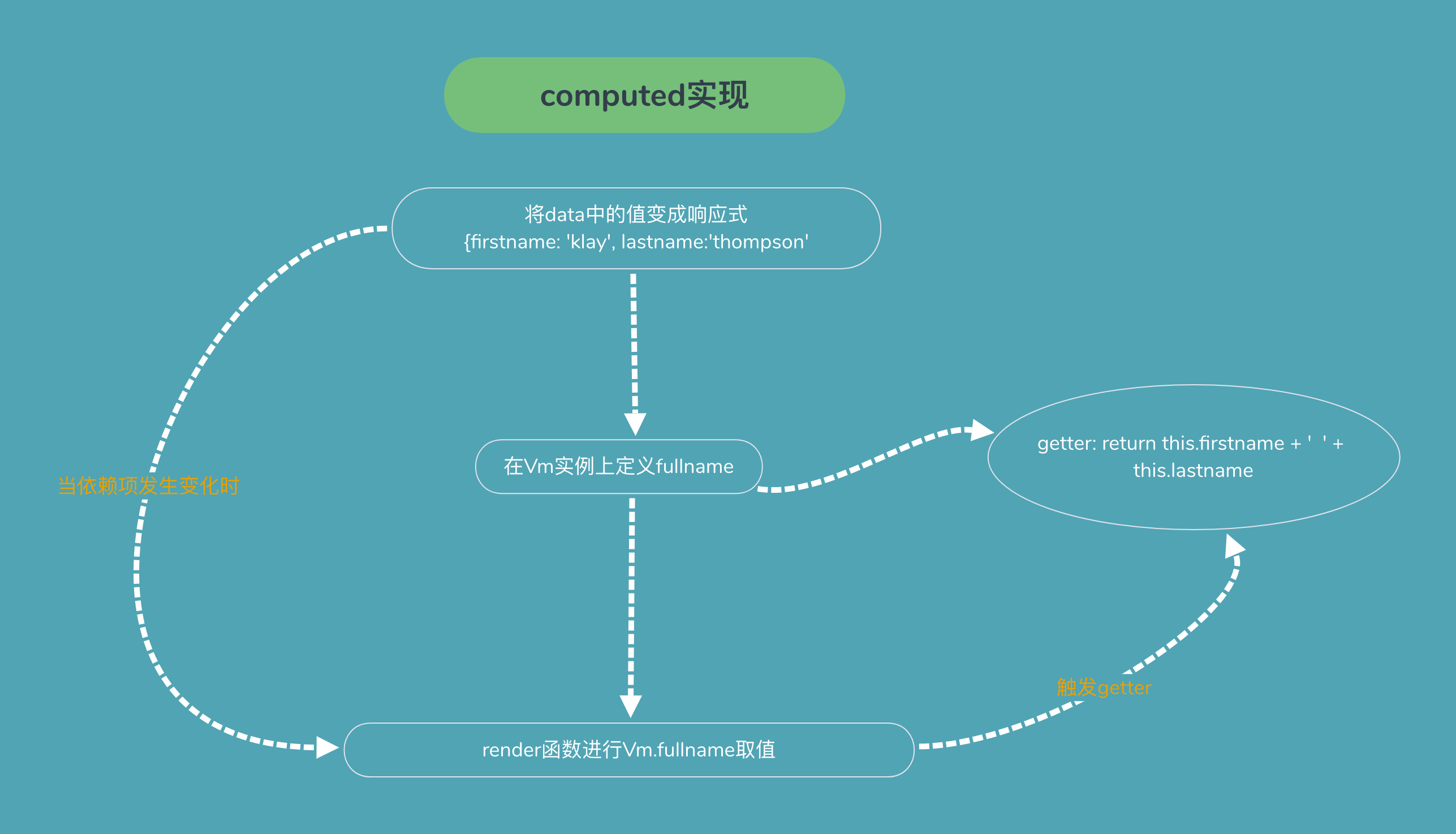 当getter触发时,根据key拿到对应的watcher,判断watcher依赖的值是否有更新,有则计算值,最后返回watcher的value。