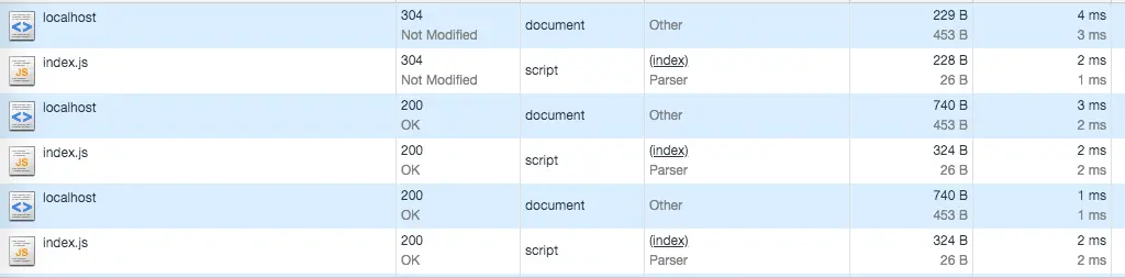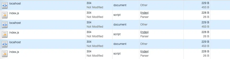 可以看到,此时 html 文件和 js文件都是 304 都是命中协商缓存了。